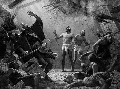 After this martyrdom of all the believers, the chief judge and his cronies come and pour salt into the Alma and Amulek’s wounds. They come over and taunt, sneer, and “smite them upon their cheeks” all while asking if they have anything else to “preach again to this people”. The chief judge, like most others in positions of assumed authority, is really feeling good at this point. He no doubt enjoys the fact that Alma and Amulek are bound with strong cords, it makes him feel powerful; he likely watched them shed many tears of sorrow during the atrocious burnings, which added to his feeling of power. And now he is reveling in his showy demonstration of power to these two, and to further prove his assumed power, he says “ye see that ye had not power to save those who had been cast into the fire; neither has God saved them because they were of thy faith. And the judge smote them again upon their cheeks, and asked: What say ye for yourselves?” The chief judge thinks he is in charge. He thinks he has power. And not just power, he thinks he has much power. He thinks he is powerful. He continues “know ye not that I have power”? He commands them to speak, to answer, to respond, but “they answered him nothing”.