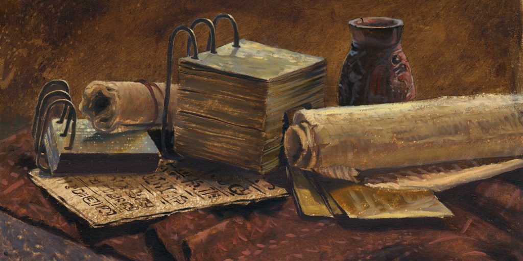 The image above is a mural painted on the wall in my exercise room (downstairs at my house). I had a young man in my ward paint this scene (among others) as he was looking for some artist work while preparing to go on his mission. At some point during the COVID quarantine times, our family – like many others – engaged in some Marco Polo app shenanigans which somehow ended up in me doing some pushups in my exercise room, which then prompted a question about the wall (that was apparently visible in the background), which led to me showing this to my siblings and parents explaining what each scene was (there are 3 main scenes and 1 large collage) a la MTV cribs. While I was explaining what this scene is (and why I had this young man draw this event) it apparently was something of a prompt for Colby, since we discussed this topic briefly, and he then wrote a blog post that included this story from Alma Chapter 43.